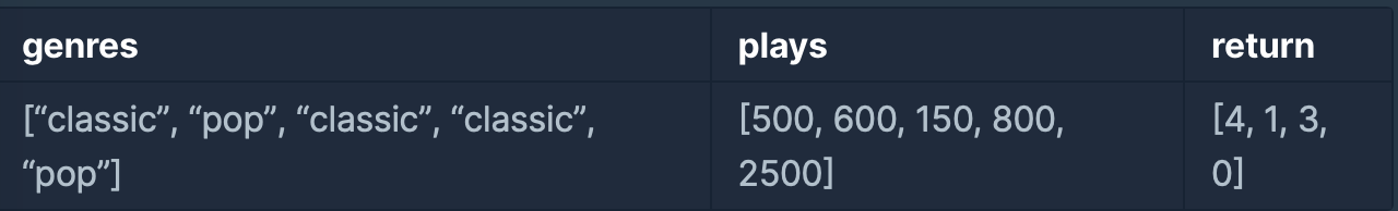 - plays[i]는 고유번호가 i인 노래가 재생된 횟수입니다.
