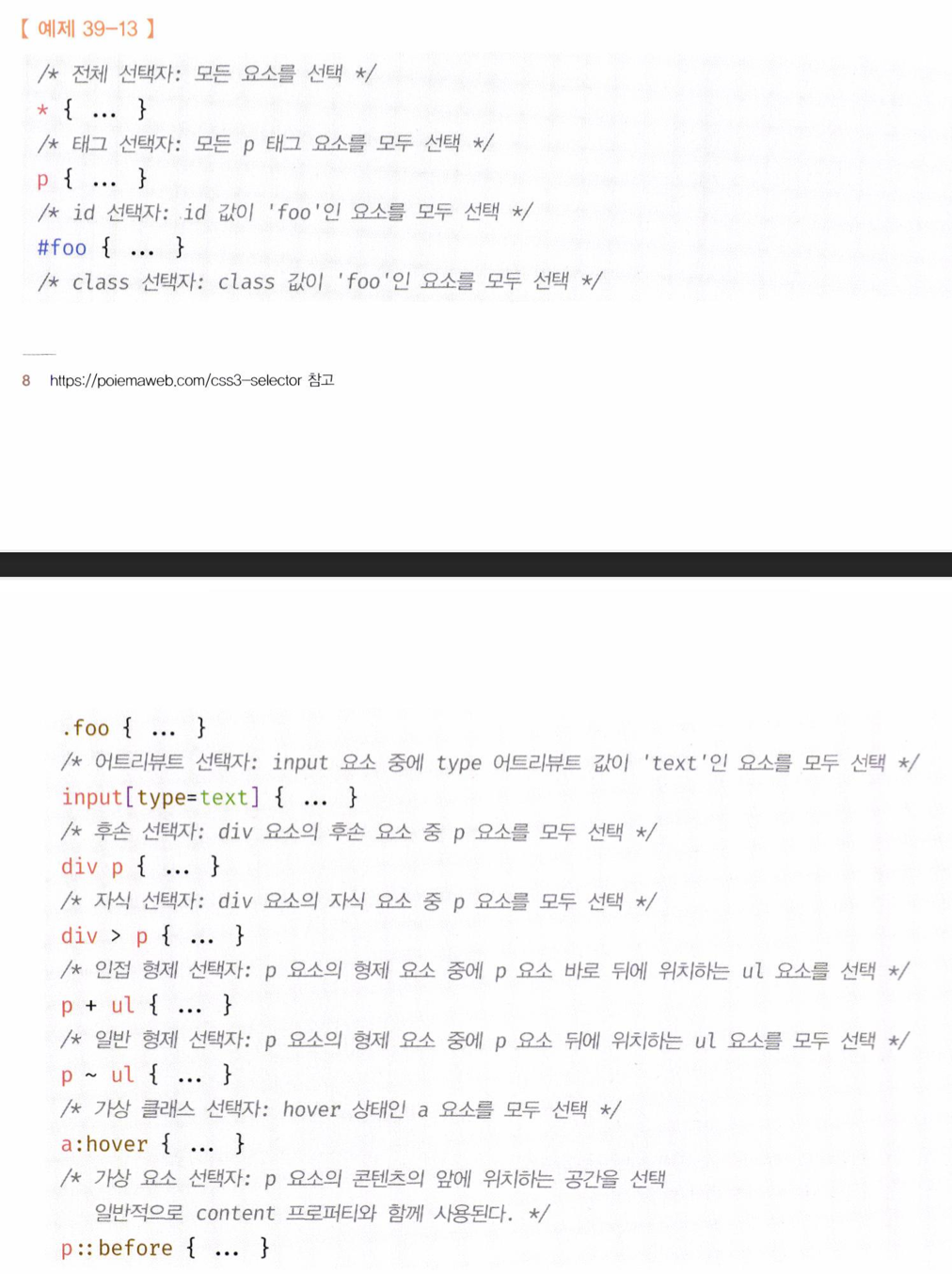 CSS Selector는 스타일을 적용하고자 하는 HTML element를 특정할 때 사용하는 문법이다.
