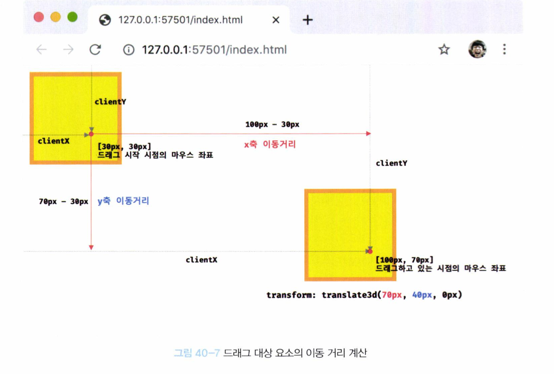 ... // 클릭 이벤트에 의해 생성된 이벤트 객체는 이벤트 핸들러의 첫 번째 인수로 전달된다. function showCoords(e) { $msg.textContent = `clientX: ${e.clientX}, clientY: ${e.clientY}` } document.onclick = showCoords; ...[예제 40-05]